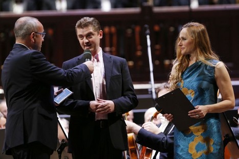 Hlavní hvězdou večera se ovšem stal Tomáš Brauner, od této sezony hlavní hostující dirigent rozhlasových symfoniků, s inspirativním gestem výrazně vláčných rukou, naprosto bezpečně se orientující v rytmicky mnohdy nesnadných kompozicích (Bernstein, Kučera), s působivou dynamikou a tempovými kontrasty (Gershwin) a s evidentním potenciálem dalšího růstu. Dirigent, k jehož angažování si vedení orchestru může gratulovat.Zvláštní zmínku si zaslouží přizvání dvou moderátorů večera. Úlohy známých rozhlasových tváří, záměrně nepříliš poučených a spíše „zvenčí“ komentujících dění na pódiu i samotný program (a rozhlasové posluchače provázející přímým přenosem), se zhostili Lucie Výborná a Jan Pokorný. Dobrý nápad, byť myslím zůstal někde v půli cesty. Vybrousit by si rozhodně zasloužil samotný obsah jednotlivých vstupů (vedle brilantního rozhovoru na téma pentatonika s přítomným Janem Kučerou k premiéře jeho skladby se nabízely též krátké rozhovory s jednotlivými sólisty či dirigentem, zvlášť Pokorný by se pak měl vystříhat čas až příliš prvoplánově vyplňujících vět), přehodnotit by možná stálo za to i aranžmá (proč nechat moderátory odcházet ze sálu, když by daleko přirozeněji vyznělo jejich posazení přímo mezi publikum?).
