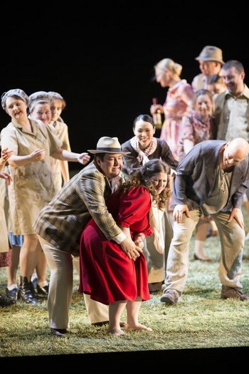 Totálnou hviezdou inscenácie je Aleš Briscein. V českej produkcii som nevidel Brisceina nikdy tak hrať, tak sa ponoriť do postavy (možno s výnimkou Havelkovej Prodanej nevěsty). To, ako využíva patologickú depresívnu hru s nožom, ktorým ostrí haluz na bič v prvom dejstve, ako počúva repliky a reaguje na ne mimikou, to, ako v oblúku rozvíja charakter postavy, je úchvatné. K tomu stavia nádherne znelý, vo všetkých polohách vyrovnaný hlas kovovej farby. Rozhodne si nemyslím, že je ešte typ Števu. Obávané frázy, ktoré stúpajú nad dvojčiarkové „a“ zostávajú celistvé, farebné. Spolu s napätím a koncentráciou na svojho Lacu, ktorý je z mäsa a kosti, taký živočíšny a taký senzitívny, že takto ho ešte nikto nevystaval, je pod režisérovou taktovkou jasnou ukážkou k čomu je v opere režisér a čo je v opere možné.Hodnotiť spevákov v inom akustickom priestore pri hosťovaní by bolo podlé. Navyše v inscenácii, kde na prázdnej scéne niet jedinej pevnej plochy, ktorá by hlasy posunovala vpred. Odvážna Gal James tak dôveruje režisérovi a spieva svoju Zdrávas královnu zatiaľ čo ju točňa odnáša späť do temnoty s takou nehou a v takom pomalom larghettu, že len tie dámy čo to spievali vedia, aké náročné to je. Jamesovej vývoj postavy Jenůfy je taký prepracovaný a natoľko uveriteľný, ako keby to všetko skutočne zažívala s tou odpudzujúcou jazvou na líci.