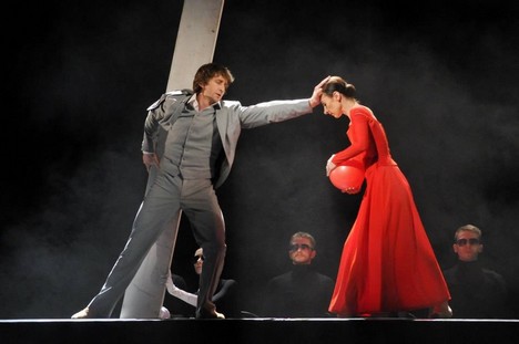 Jednotlivé choreografické prvky se ale v obou dějstvích zbytečně často opakují, jen v nepatrně změněných variantách. Proto představení, jakkoli originální, působí místy zdlouhavě. A to jak v prvním, tak ve druhém dějství. Přitom na tanečníky klade inscenace skutečně velké nároky. Právě pro svoji abstraktnost a přitom náročnost na přesnost. Plzeňský balet má ovšem výborné představitele, kteří skvěle naplnili netradiční typ inscenace. V hlavní roli exceloval Miroslav Hradil, který dal Aschenbachovi pohybovou jistotu i potřebný výraz. Podobně jako grácii a eleganci vtiskla postavě jeho ženy Zuzana Hradilová. Manželům Hradilovým, dlouholetým členům baletního souboru Divadla J. K. Tyla, je také celá inscenace věnována.