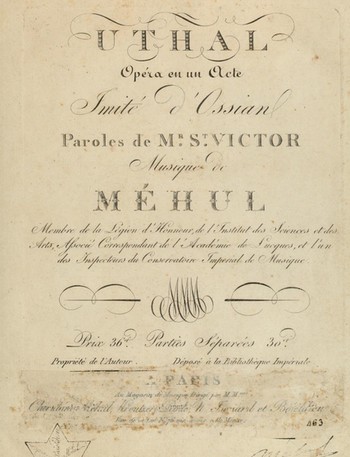 Méhul kromě mnoha sonát, symfonií, mší a baletů složil více než čtyřicet oper, z nichž však zůstal v obecném povědomí jen jeho Josef v Egyptě. Opera Uthal měla premiéru v roce 1806 v pařížském Théâtre Feydeau. (V Čechách byla uvedena v jediné inscenaci, a to ve Stavovském divadle: premiéra byla 19. října 1813, obnovená premiéra pak 18. října 1815. Vítězné Rakousko bylo po bitvách u Lipska a u Waterloo k Napoleonovu skladateli evidentně velkorysé.) Méhulův Uthal odráží dobovou zálibu ve skotské historii v té podobě, jak ji podávají Macphersonovy Ossianovy zpěvy. Zápletka není složitá: Uthal zabere pozemky svého tchána Larmora. Uthalova manželka Malvina, která je Larmorovou dcerou, se zmítá mezi láskou k manželovi a k otci. Snaží se odvrátit válku mezi nimi, leč marně. Uthal je poražen v bitvě a je odsouzen do vyhnanství. Malvina se chce obětovat a následovat ho do exilu. To Uthala přiměje k přiznání, že chyboval, a Larmore se s ním smíří.