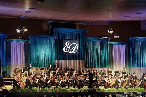 Co si přát víc? Snad události lépe vyhovující sál (příliš reprezentativně se nikdy netvářila ani Sportovní hala, ani Kulturní dům Metropol) a rozhodně lepší propagaci. Kdo nebyl přímo z Českých Budějovic, dozvídal se obvykle o koncertech z novin až v den jejich konání, internetovou adresu si pak festival pořídil až v roce 2007. V letošním roce se vedení Slavností rozhodlo postavit přinejmenším první z uvedených výtek a našlo pro galakoncert nebývalé místo konání. Stal se jím teprve loni dokončený pavilon T na budějovickém výstavišti. Vizuálně nápaditá stavba ovšem skrývá uvnitř rozlehlý a neútulný hangár s odhaleným žebrovím a masívní vzduchotechnikou, takže zvolené prostředí budilo jisté rozpaky i tentokrát. Pokud se ovšem splní velký sen pana Kazila, takto i předsedy správní rady Jihočeské společnosti přátel hudby, bude se festivalový galakoncert už v roce 2016 konat ve Velkém sále Emy Destinnové pro jeden tisíc osob, jenž má být součástí Koncertního a kongresového centra Antonína Dvořáka, přezdívaného „Rejnok“. Opulentní blob podle návrhu Jana Kaplického a Evy Jiřičné by se měl začít stavět už koncem příštího roku, a nedojde-li ke komplikacím, bude moci za čtyři roky závidět hudbymilovná veřejnost Českým Budějovicím nejen festivalové galakoncerty…