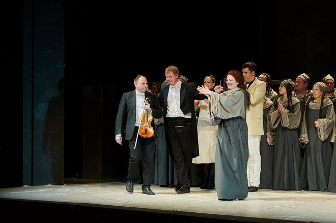 Jules Massenet: Thaïs - po premiéře, Martin Doubravský (uprostřed) - DFXŠ Liberec 2016 (foto FB DFXŠ Liberec/Lukáš Trojan)