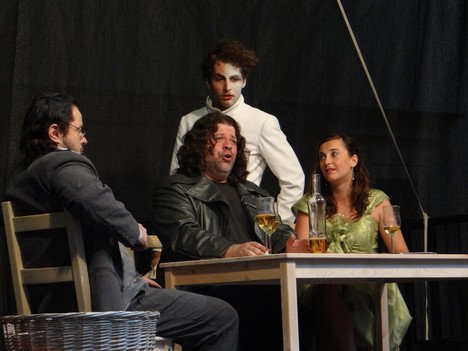 Původní text italského libreta přeložil, upravil a vtipně převedl do současné češtiny Tomáš Studený, který si s chutí i zahrál, ba dokonce i zazpíval tatíka a strýčka Eugenia (jakkoli zpěv není v portfoliu jeho schopností dominantní). Studený je zároveň autorem režie, scény a kostýmů společně s Markem Mokošem, který špásoval a zasahoval do děje v přidané pohybové/němé roli Kupida, jakéhosi Puka – a ze svého luku místo milostných šípů vrhal na milence „postmoderně“ jen barevné konfety.