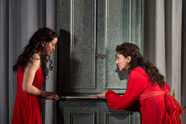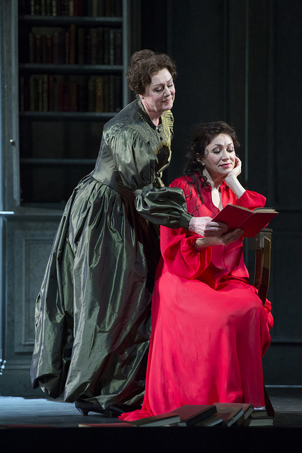 Mnoho nového nevnesli inscenátoři do charakteru Taťániny sestry Olga (ruská mezzosopranistka Elena Maximova), která svým strnulým úsměvem a poskakováním vskutku nenechala nikoho na pochybách, že je úplně jiná než Taťána.