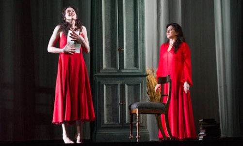 Petr Iljič Čajkovskij byl mnohými označován za „neruského“ kosmopolitu – přitom jeho opery jsou nezpochybnitelně ruské a autorovu národnost vyjadřují natolik výrazně, že (podobně jako u Smetany) postihují duši národa. Právě zde je největší slabina Holtenova inscenačního pojetí. Má daleko k atmosféře vesnického statku Larinových a Holten se tak připravil o kontrast s luxusem komnat knížete Gremina a proměny nesmělé romantické čtenářky v dámu velkého světa (jakkoliv si pod večerní róbou ponechala vykukující červené „dívčí“ šaty). Průhledy otevřenými vysokými dveřmi do stylizované „venkovské“ krajiny byly sice výtvarně působivé (světelný scénář Wolfgang Göbbel), ale nezdařilo se je propojit s „venkovským“ lidem, přicházejícím na oslavu dožínek v černém, dámy dokonce v jakési velké večerní, stejně jako na Taťániny narozeniny i na ples jako jakási všudypřítomná přelévající se černá masa. Jakkoli hrál orchestr Královské opery pod taktovkou mladého britského dirigenta Robina Ticciatiho suverénně stejně jako mistři zvuku a hudební režiséři vyvážili audio stránku přenosu, byl to takový spíše kosmopolitní Oněgin.