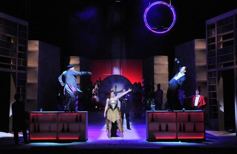Těžko říci, nakolik odvážný korzetový kostým s odhalenými rameny, minisukní, síťovanými černými punčochami a koketním blyštivým minicylindříkem inspiroval Ivanu Šakovou k pojetí Giulietty jako opravdu ordinérní kypré kurtizány s vemlouvavě lísavým sopránem; i ona se na jevišti zjeví spuštěna jako akrobatka, která sedí v kruhu lemovaném stovkami barevných žárovek.