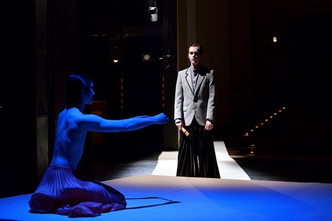 Účinek křehkého komorního příběhu povýšila režie Jiřího Nekvasila: posadil diváky na jeviště, odkud sledovali labyrint příběhu a úvah jeho protagonistů v „dálavě“ řad hlediště divadla Jiřího Myrona skrze soustředěný taneční výkon Po-Ju Lina v choreografii Lucie Burešové inspirované japonskými pohybovými kánony. Pomalé obřadné pohyby do půl pasu nahého tanečníka v červené skládané suknici, v ruce s vějířem, střídaly prudké pohybové erupce.