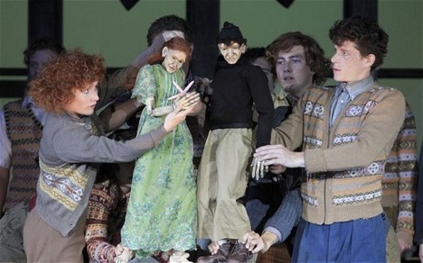 Součástí Händelova Ariodanta jsou rozsáhlé taneční scény. Podobně jako v Kouzelné flétně k nim choreografka Lucy Burge i režisér a autor loutek Finn Caldwell přistoupili tak, že loutkoherci přiznaně vodí po stole asi metr vysoké dřevěné loutky, které znázorňují Ginevru a Ariodanta. Nejprve sice předkládají příběh o šťastné budoucnosti milenců se spoustou dětiček, ale po „odhalení“ Ginevřiny údajné nevěry se promění ve výjevy ze silnice, kde je Ginevra za prostitutku v krátkých černých lesklých šatech, „zákazníci“ přijíždějí po stole v autíčkách a užívají si jí jako sexuální otrokyně.