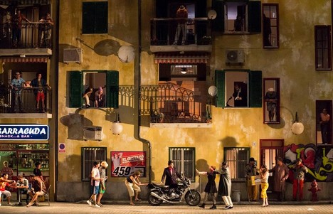 Právě tuto ničím nekomplikovanou radostnost, veselost a zábavu se mladému italskému režisérovi Damianovi Michielettovi podařilo zvýraznit jako základní klíč k této opeře. A bylo zřejmé, že i když jde v jeho případě o jeho první angažmá v Pařížské opeře, má rozsáhlé mezinárodní zkušenosti s operními režiemi v Evropě, Spojených státech i Asii. Scénu navrhl italský scénograf Paolo Fantin, který s Michielettim pravidelně spolupracuje od roku 2007, v hyperrealistickém stylu – jako sevillskou, poněkud ošuntělou ulici současnosti s blokem mnohapatrových činžáků, v přízemí s bistrem Barracuda, oprýskanými a graffiti počmáranými omítkami a nezbytnými balkony, kde Sevillanky věčně suší prádlo. Fantin touto zástavbou zaplnil jeviště od podlahy až po strop a po celé šířce. Bartolo bydlí uprostřed ulice v domě s kukaní pro vrátného v přízemí a patří mu hned tři podlaží. Tato část činžáku stojí na točně, která svým pohybem při přestavbách dává nahlédnout do útrob Bartolova obydlí od Rosinina pokojíčku vyzdobeného plakáty dívčích idolů a plného holčičích tretek, koupelny, po kuchyň a obývák až po ložnici, ve třech patrech nad sebou, spojených schodišti. Interiéry pokojů jsou vybaveny velmi detailně nábytkem a dalším příslušenstvím tak věrohodně, že by se v nich jistě dalo bydlet. Takto opulentní scéna rozhodně nesvědčí o tom, že by Pařížskou národní operu sužovala finanční krize.