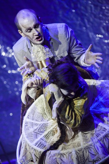 Opera založená na volném sledu asociací poskytla ideální prostor režisérce Zuzaně Fischerové, která se teprve učí svůj talent divadelní fantazie propojit s inscenovaným dílem. S výtvarníkem scény a kostýmů Davidem Janoškem umístila operu do prostoru jakéhosi exkluzivního módního salonu, jak napovídaly krejčovské figuríny i kostýmy. V něm je dovoleno cokoli. Hned vstupní dialog nastoluje typický antagonismus nenávisti a zároveň vzájemné závislosti matky a dcery – obě se shodují, že mají rády hudbu, jenže, jak se vzápětí ukáže, každá úplně jinou. Dominantní soutěživá a stále koketní matka altistky Jarmily Balážové kontrastuje s hystericky umanutou dcerunkou s podání sopranistky Terezy Maličkayové, která si chce vyvzdorovat lásku ke stínu oběšence sebevraždou, aby nakonec s rozčarováním zjistila, že oběšencem není nikdo jiný než elegantní „milovník“ Satan, kterého jí na začátku vnucovala matka. V této roli se výrazně uplatnil barytonista Tadeáš Hoza.