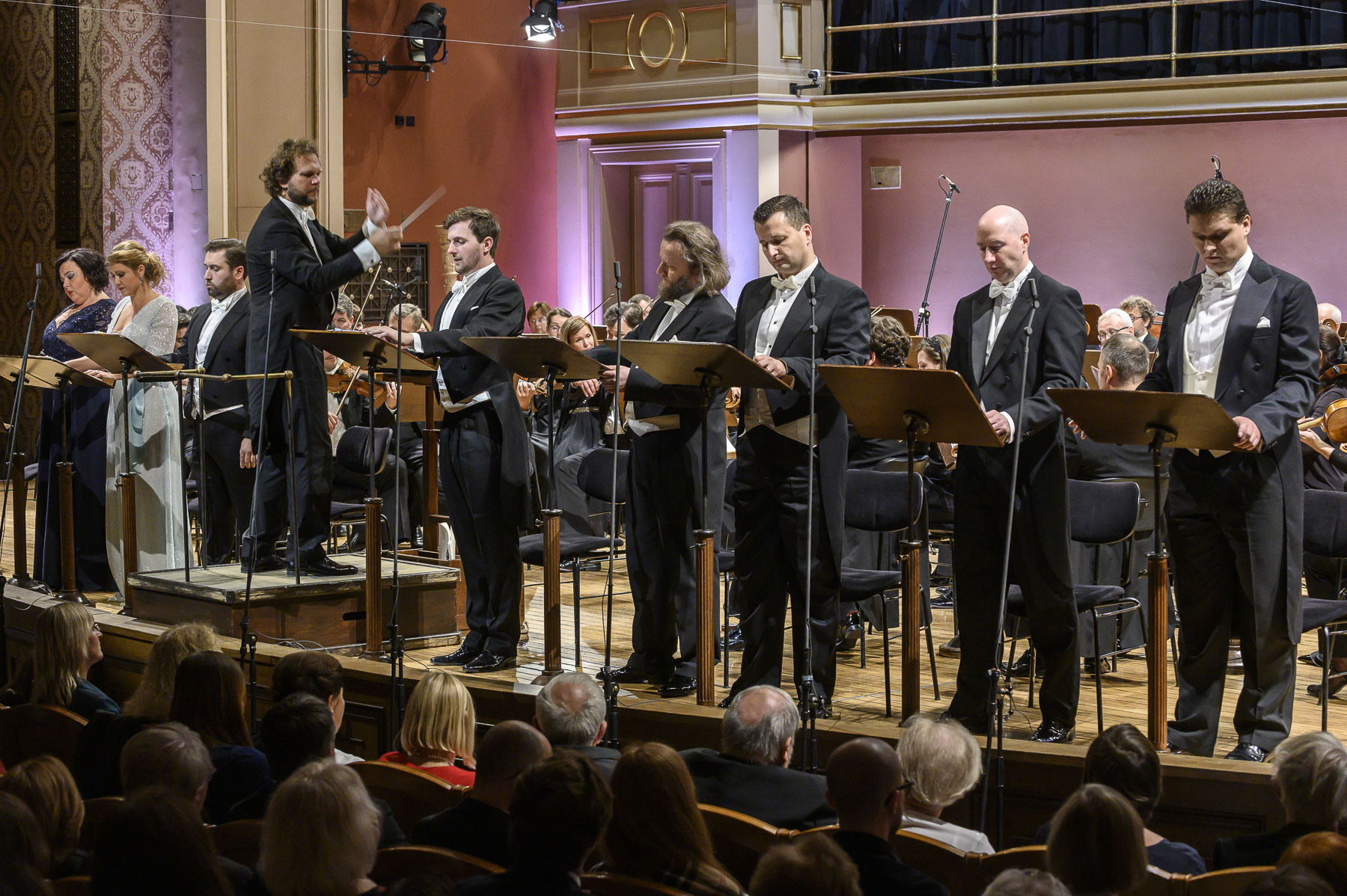 Nesnadného úkolu se ujal dirigent Tomáš Brauner, který zúročil své operní zkušenosti a uplatnil značnou pohotovost. A jak zaznělo na tiskovém brífinku, musel do toho všeho řešit i chyby v partech, protože na rozdíl od přípravy notových materiálů k uvedení Alfreda, zrekonstruovaných a odborně zrevidovaných pod vedením Jarmily Gabrielové, Akademie klasické hudby tentokrát finančně zabezpečila pouze digitalizaci původních rukopisů. U neznámého díla samozřejmě zůstává otevřená otázka, nakolik by zafungovala historicky poučená interpretace dle možností tehdejšího Prozatímního divadla a nakolik partitura vůbec umožňovala při obsazení velkého orchestru s deseti prvními houslemi a pěti kontrabasy větší dynamické kontrasty nad rámec převažujícího vydatného zvuku ve škále od forte po čtyřnásobné fortissimo. Brauner ovšem svými srozumitelnými gesty udržel základní souhru v rozvrásněné partituře i základní poměr zvukových hladin orchestru, sólistů a sboru (který se dozajista ještě doladí ve studiu pro nahrávku). Za tu cenu, že se sólisté museli často uchylovat k vypjatému dramatickému výrazu exponovanému i ve vysokých polohách jejich hlasového oboru.