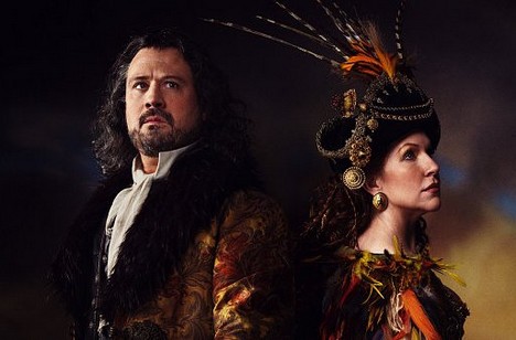 Vysokou branou iluzivně kresleného portálu vstupujeme na ostrov plný čar a kouzel. Na jedné straně má svoji „pracovnu“ Prospero, zapuzený milánský vévoda (kontratenorista David Daniels), který se sem uchýlil se svou dcerou Mirindou (Lisette Oropesa). Na ostrově, který dosud ovládala čarodějnice Sykorax s „divokým“ synem Kalibanem (Luca Pisaroni) si zřídí svoji vědátorskou pracovnu. Ve svém dlouhém kabátci a s dlouhou holí zakončenou tajuplným matně svítícím skleněným „okem“ až připomíná wagnerovského vládce bohů Wotana. Prospero si užije se Sykorax milostný románek – Sams (na rozdíl od Shakespeara) tuto kouzelnici zhmotnil na jevišti a mezzosopranistce Joyce DiDonato tak věnoval parádní roli včetně dojemného mateřského lamenta nad tím, že nemůže milovanému synovi pomoci, když se trápí milostným zklamáním. Jenže Prospero Sykorax zapudil a odehnal na protilehlou stranu ostrova – a protože sám je také kouzelník, silou své magie, vyčtené z knih, ji připravil o ducha povětří Ariela. Daniella de Niese v něm rozehrála diblíka, který ve své dovádivé ztřeštěnosti poplete, co se dá, stoprocentně fungující „čáry“ na technické nástrahy brilantních koloratur ale – podobně jako při svém pražském recitálu před dvěma lety – neměla.