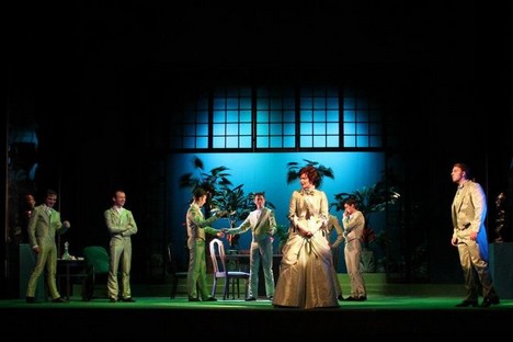 Carsenovy Hoffmannky v Pařížské opeře s Tomášem NetopilemKromě Bia Oko představení uvedla i kina v Ostravě, Blansku a Mariánských Láních. Šlo o další znovuuvedení vyhlášené inscenace režiséra Roberta Carsena z roku 2000, která už vyšla na DVD, kterou převzala i milánská Scala a v níž se vystřídaly takové hvězdy jako Rolando Villazón, Nathalie Dessay, Bryn Terfel, Annette Dash. Carsen tuto fantaskní operu, v níž básník Hoffmann se svou múzou vzpomíná na své tři osudové lásky, přenesl do současnosti a nápaditě umístil do různých prostor repliky Opéry Comique, divadla, kde měly Hoffmannovy povídky svou premiéru a kde se podle libreta Offenbachovy opery odehrává představení Dona Giovanniho – spolu s hloučkem neodbytných ctitelů v „zákulisí“ vidíme, jak v něm účinkuje Hoffmannova nejnovější láska, Stella. Z Lutherova sklípku v Norimberku je dlouhý barpult divadelní kantýny (na naše poměry hodně honosné). První jednání se odehrává na zadním jevišti, kde parta kulisáků obsluhuje dálkově divadelní stroje včetně Olympie. Pro třetí jednání, původně v Benátkách, se díváme z jeviště do hlediště s řadami divadelních sedadel, které se rafinovaně pohybují proti sobě a navozují pocit jízdy gondolou. Nezajímavěji vyšlo druhé jednání (zde Antonia) umístěné do orchestřiště, v němž mezi pulty Antonie sní svůj sen operní zpěvačky a démonický doktor Miracle se jako posel zla ujme orchestru a doslova „diriguje“ ďábelské záměry svou taktovkou.