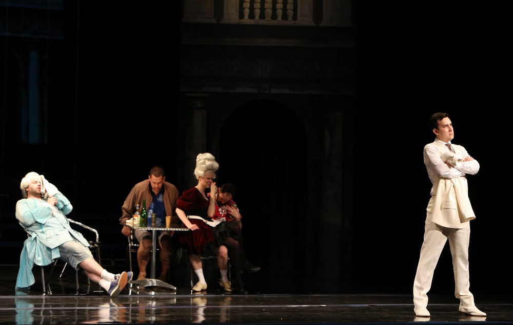 K dispozícii v alternácii je však talentovanejší a vzácnejším materiálom disponujúci úplne mladý Boris Prýgl, ktorého som počul len na hlavnej skúške, takže hodnoteniu sa vyhýbam. Obmedzujem sa len na informáciu. Ďalšou z hlavných postáv je Taddeo, ktorého profil réžia posunula do retro štýlu. Tomáš Šelc má bonus v muzikálnosti a skúsenosti so starou hudbou. Jeho nevýhodou je suchší timbre, hlas mu znie plnšie vo vyššej strednej než hlbokej polohe. Z dvoch tenorov si lepšie počínal z ruskej školy vychádzajúci Ruzil Gatin (Sandrino), ktorý preukázal dostatočný objem tónu i farbu, potrebuje však zmäkčiť a skultivovať frázy.