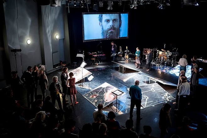 Nutno podotknout, že v představení hudba skutečně silně dominuje. Je v ní obsažena fantazie, obraznost, výzva směřovaná k publiku, kterému není dovoleno ukolébat se v melodickém snění. Jen zdánlivě nesourodý zvuk atakuje jeho smysly a pozvolna jej uchvacuje až k bodu, kdy si divák-posluchač poslech začne užívat. Energie hudebníků i tanečníků je hmatatelná a hudebníci jsou nedílnou součástí všeho dění na jevišti, počínaje tím, že Petr Vrábel začíná dirigovat z uličky mezi diváky, po přeskupování hráčů na scéně mezi jednotlivými větami skladby.