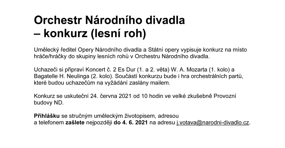 Čtení Orchestr Národního divadla hledá hráče do skupiny lesních rohů