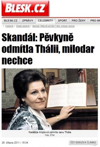 Když už tedy jsme u těch choulostivějších věcí, chtěl bych se – ještě než skončíme – zeptal na Thálii za celoživotní mistrovství. Víte, dost lidí – i z řad bývalých kolegů – vám to má za zlé, že jste Thálii loni odmítla…