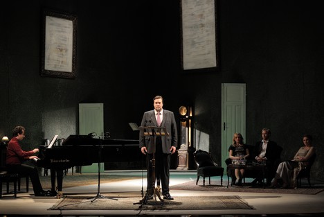 Deväťdesiat štyri piesní, päť hlasov, päť interpretov. Na javisku, premenenom scénou Davida Baziku na meštiansky salón devätnásteho storočia, sa začína temer šesťhodinový spevácky maratón.