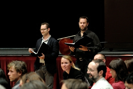 Nenahraditelná lidskost přístupu, laskavý hudební humor a uvolněná atmosféra z toho plynoucí. To všechno a samozřejmě mnohem víc tvořilo pojítka mezi díly Bernharda Langa, Christiana Wolffa a Petra Kotíka. Langova Monadologie XVII citující část She Was One z Many Many Women zazní jako první. Na Kotíkovo pozvání přistupují tenoristi S.E.M. Ensemble a citovanou část zazpívají. Nečekané a velmi osvěžující intermezzo. Následuje vybírání správného zvuku kláves. Jsme lidi.