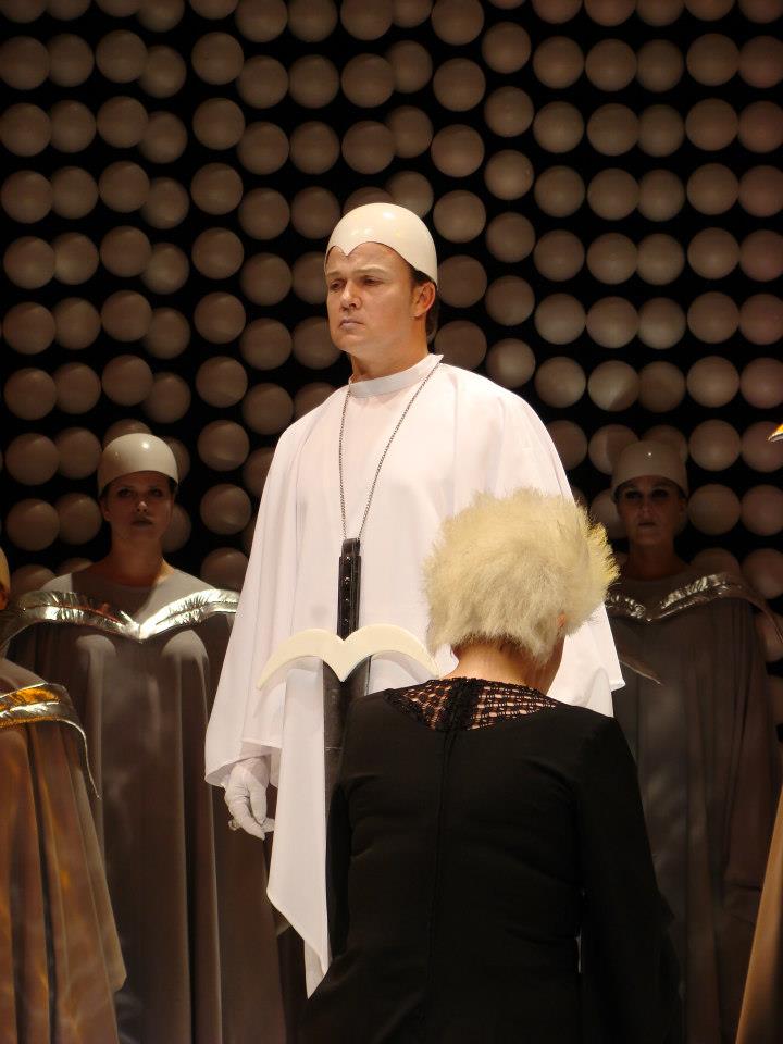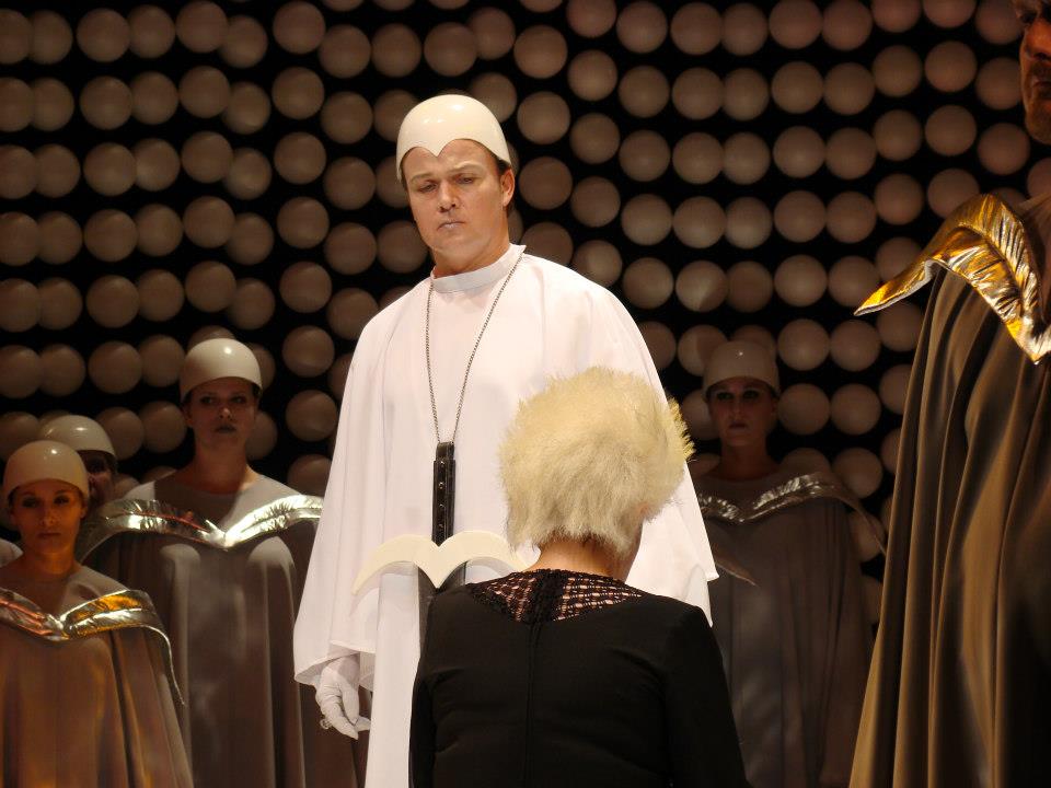 A o ně šlo ten večer především. Tenorista Aleš Briscein vystoupil v titulní rolí coby poněkud překvapivý wagnerovský příslib budoucnosti – poprvé se setkal s rolí Lohengrina v loňském roce na festivalu v rakouském Erlu, a hned s obrovským ohlasem. Posluchači, kteří znají z vynikajících nahrávek či naživo mohutné hlasy borců těžké váhy, jakými jsou Ben Heppner či Johan Botha, nebo z poslední doby tmavý tembr Jonase Kaufmanna, se možná ptají, jak se v této společnosti vyjímá spíše lyrický Briscein. Popravdě řečeno zvláštně, ale určitě zajímavě! Po jeho typově i hlasově přesných Jenících, Romeech či Nemorinech je třeba si na jeho ztvárnění hrdinného a poněkud sošného rytíře nejprve zvyknout. Pěvec ovšem roli zvládá technicky zcela spolehlivě, moudře šetří sílami a finálnímu duetu s Elsou i oběma závěrečným monologům dodává něhu, jíž i u zmíněných tenorových hvězd prakticky nenacházíme. Myslím, že takové pojetí role je zcela adekvátní, a uvážime-li, jakou wagnerovskou kariéru si ve světovém měřitku buduje Brisceinovi hlasově příbuzný Klaus Florian Vogt, dočkáme se možná od našeho tenoristy i jiných pozoruhodných výletů mimo jeho obvyklý obor. A dá-li Pán Bůh, nejen v Ostravě…