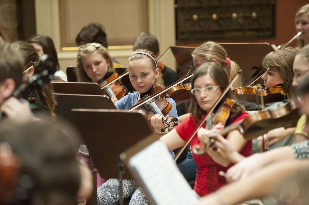 V orchestru zasedlo přes sedmdesát mladých hudebníků a hudebnic nejčastěji ve věku dvanáct až osmnáct roků, kteří do Prahy přijeli ze Základních uměleckých škol v Liberci, Ústí nad Orlicí, Jihlavě a Brně. Měli možnost pracovat s dirigentem Ladislavem Ciglerem (dvě desetiletí vede Filharmonii mladých Praha) a šéfdirigentem České filharmonie Jiřím Bělohlávkem. Což nebylo ledajaké… „Hrát pod taktovkou pana Ciglera byla velká zkušenost a mohl jsem poznat jiné postupy zkoušek, než na které jsem byl zvyklý. A to, že jsem hrál pod taktovkou pana mistra šéfdirigenta Jiřího Bělohlávka, tak to budu s hrdostí vyprávět svým vnoučatům.“