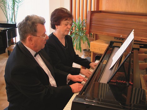 Manželia Ludmila Kojanová a Pavel Novotný pri jednom, dvoch… klavíroch