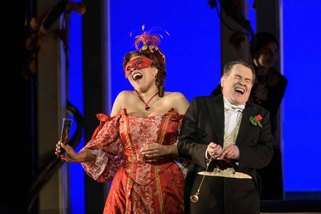 Johann Strauss: Die Fledermaus – Mary Elizabeth Williams (Rosalinde), Mark Stone (Eisenstein) – Welsh National Opera 2017 (zdroj wno.org.uk / foto Bill Cooper)