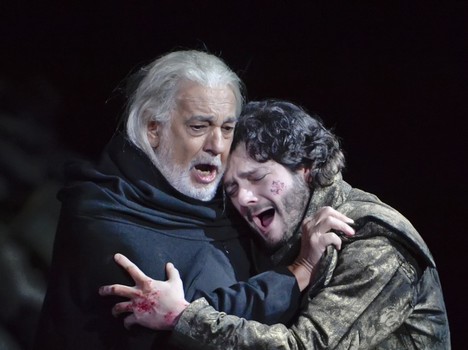 Hlavní hvězdou inscenace, která premiérovému večeru zajistila i vysoký společenský lesk a účast médií, byl bezesporu Plácido Domingo, který oslaví 21. ledna 2014 neuvěřitelné sedmdesáté třetí narozeniny. Podle tiskových materiálů jde o jeho sto čtyřicátou čtvrtou jevištní roli. Jeho zkoušený otec Francesco Foscari je předobrazem mnoha moderních rodičů, kteří jsou postaveni před volbu. Domingo ztvárňuje dóžete jako od počátku váhajícího, ale milujícího otce, který spoléhá na spravedlivý průběh synova soudu. Domingovu výkonu se nedá nic vytknout; dokonalé verdiovské frázování, naprostá srozumitelnost textu a citové afekty vytvářejí uvěřitelnou postavu vládce v momentu „odcházení“. Domingo ve své postavě zdůrazňuje právě střet zájmů mezi osobním životem a úřadem, který vykonává již třicet čtyři let. Velmi mu svědčí identifikace s otcovskou rolí. Jeho kreace byla absolutním vyvrcholením večera, které posílilo gradování jeho pěveckého výkonu bez jakékoli námahy patrné na hlasových prostředcích. Můžeme jen opakovat slova obdivu o fyzické kondici a stavu hlasu. Věcí vkusu zůstává fakt, že Domingo zpívá většinu partu Francesca Foscariho jako dramatický verdiovský tenor, nikoli jako charakterní verdiovský baryton, na kterého mu ani jeho temnější barva hlasu nestačí. Ale právě blízkost s lyričtějším hlasovým oborem postavy Jacopa dodává inscenaci pocit fyzického příbuzenství obou postav.+++