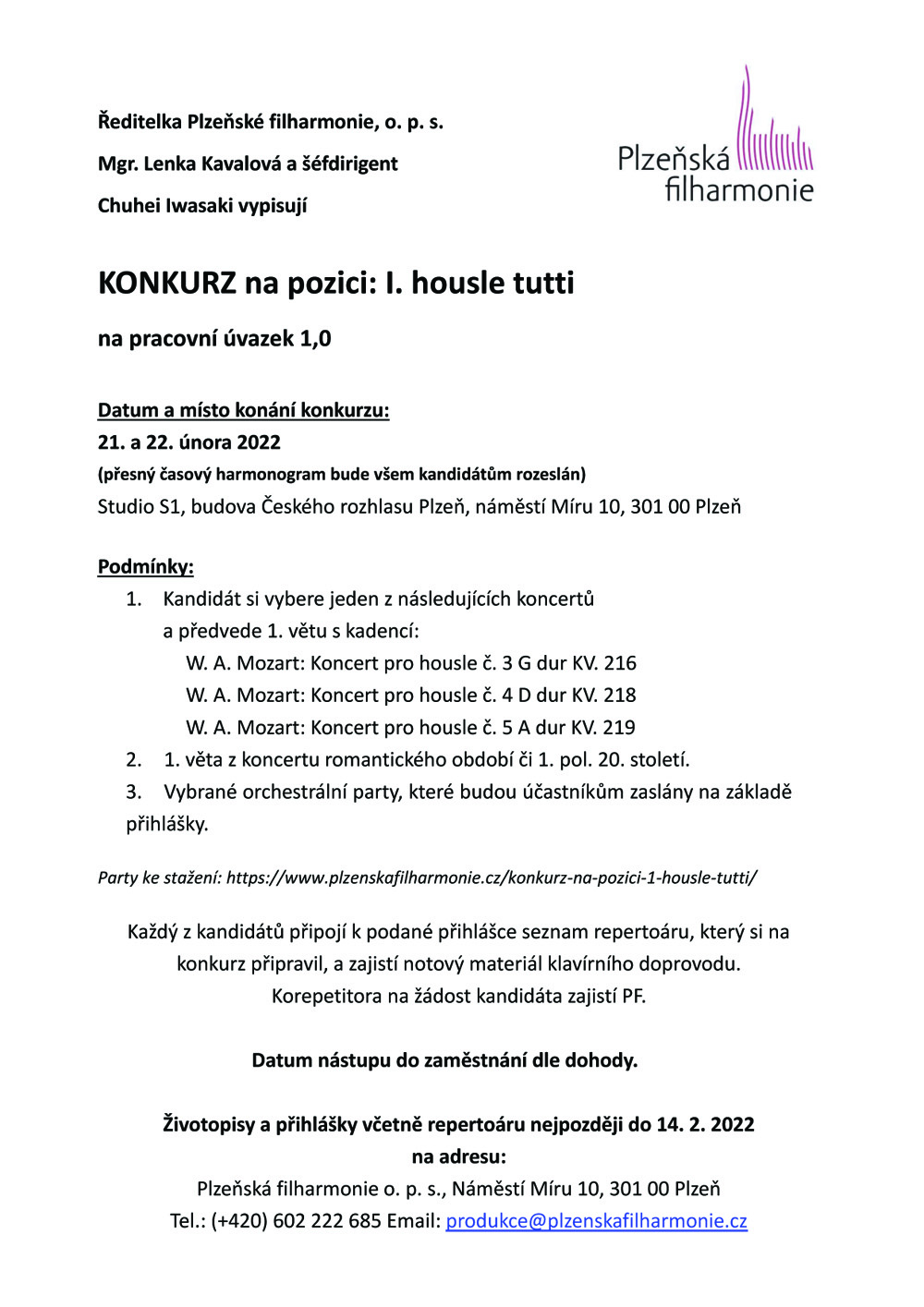Inzerce Plzeňská filharmonie hledá I. housle tutti Publikováno 26/12/2021 sdílejte: 0 minut čtení sdílejte: TémataSeznam inzerátů Sdílet článek Facebook email zkopíruj odkaz vytisknout sdílejte: Předchozí článek Umělá inteligence versus Ludwig van Beethoven Další článek Vánoce na ARTE: Francouzská barokní hudba z Versailles (VIDEO) 0 0 hlasy Ohodnoťte článek Odebírat Přihlášení Upozornit na nové a další komentáře nové odpovědi na můj komentář Label {} [+] Jméno* E-mail* Webová stránka Label {} [+] Jméno* E-mail* Webová stránka 0 Komentáře Nejstarší Nejnovější Most Voted Inline Feedbacks Zobrazit všechny komentáře Načíst další