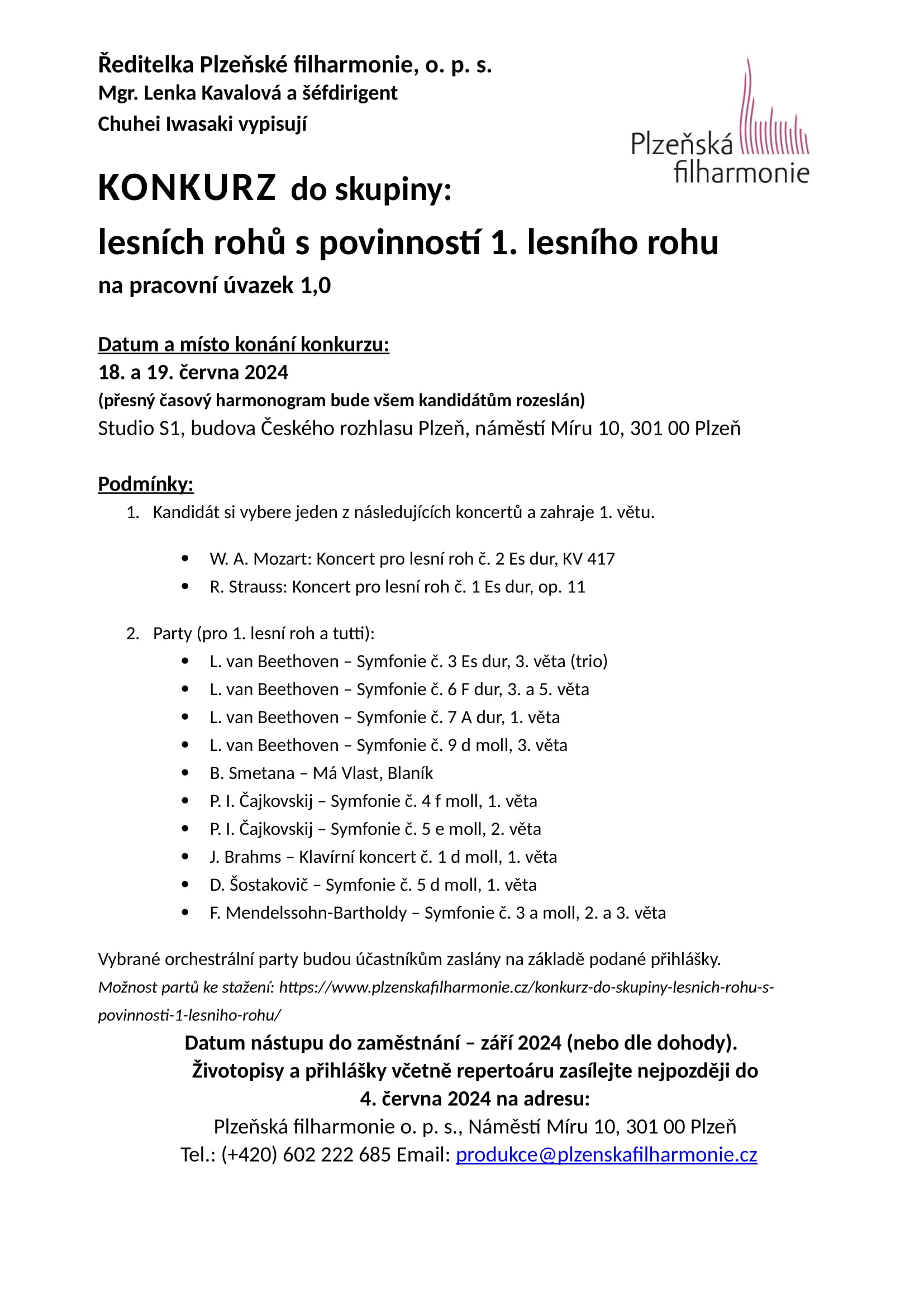 Inzerce Plzeňská filharmonie vyhlašuje konkurz do skupiny lesních rohů s povinností 1. lesního rohu redakce Publikováno 24/05/2024 sdílejte: 0 minut čtení sdílejte: TémataSeznam inzerátů Sdílet článek Facebook email zkopíruj odkaz vytisknout sdílejte: Předchozí článek Odklepnuto: Olomoučtí radní schválili zřizovací listinu sloučeného divadla a filharmonie Další článek Nejočekávanější projekt Pražského jara povede Jakub Hrůša 0 0 hlasy Ohodnoťte článek Odebírat Přihlášení Upozornit na nové a další komentáře nové odpovědi na můj komentář Label {} [+] Jméno* E-mail* Webová stránka Label {} [+] Jméno* E-mail* Webová stránka 0 Komentáře Nejstarší Nejnovější Most Voted Inline Feedbacks Zobrazit všechny komentáře Načíst další