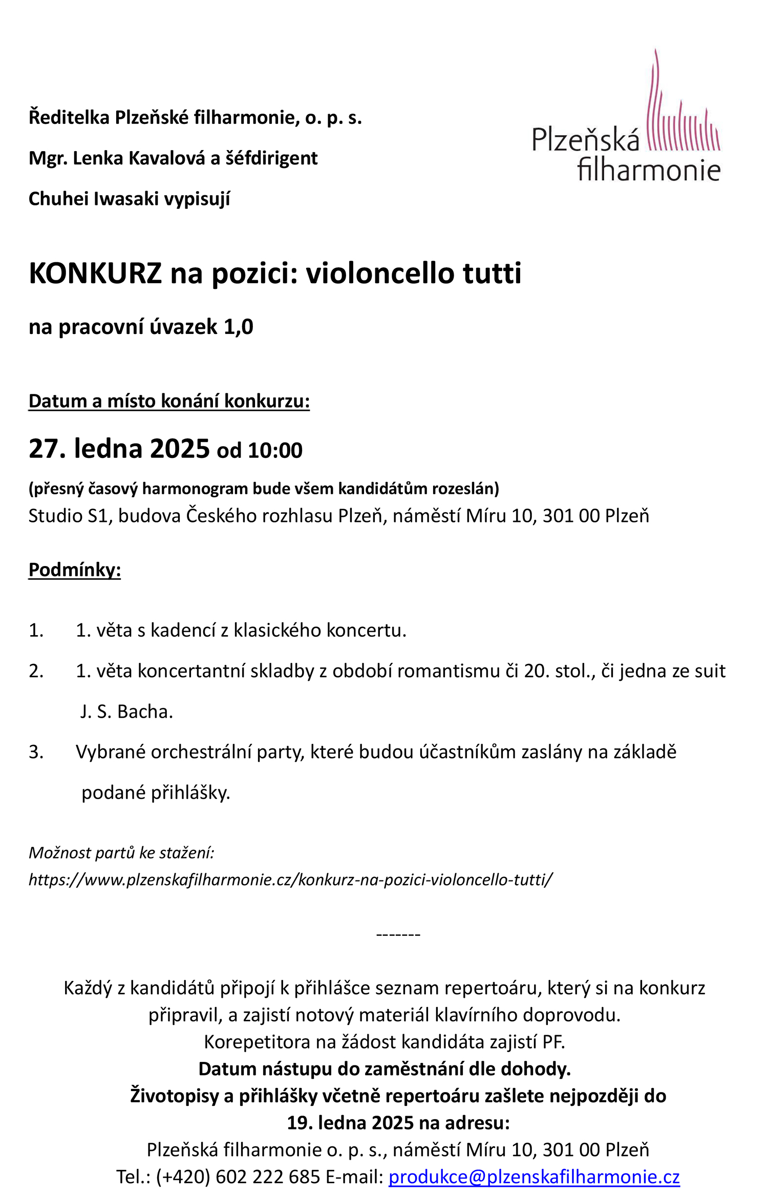 Inzerce Plzeňská filharmonie vypisuje konkurz na violoncello tutti Publikováno 06/12/2024 sdílejte: 0 minut čtení sdílejte: TémataSeznam inzerátů Sdílet článek Facebook email zkopíruj odkaz vytisknout sdílejte: Předchozí článek Basista Jan Hnyk: Cigareta se Salminenem mu změnila kariéru Další článek Těla, zastavení, komunita, péče, queerness: Za tancem do Berlína se Studiem ALTA 0 0 hlasy Ohodnoťte článek Odebírat Přihlášení Upozornit na nové a další komentáře nové odpovědi na můj komentář Label {} [+] Jméno* E-mail* Webová stránka Label {} [+] Jméno* E-mail* Webová stránka 0 Komentáře Nejstarší Nejnovější Most Voted Inline Feedbacks Zobrazit všechny komentáře Načíst další