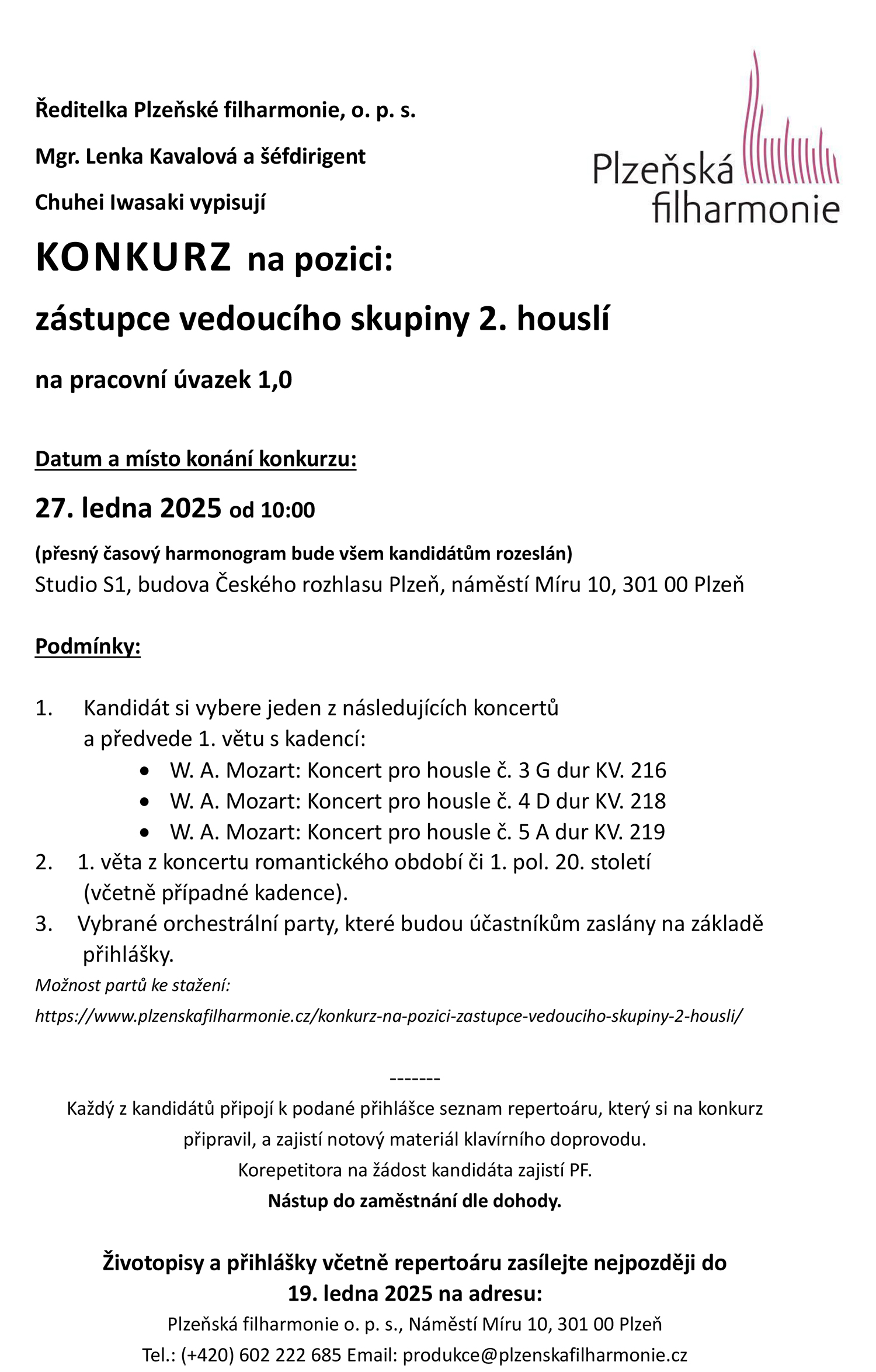 Inzerce Plzeňská filharmonie vypisuje konkurz na zástupce vedoucího skupiny 2. houslí Publikováno 11/12/2024 sdílejte: 0 minut čtení sdílejte: TémataSeznam inzerátů Sdílet článek Facebook email zkopíruj odkaz vytisknout sdílejte: Předchozí článek Milan Sládek – mistr evropské pantomimy s neutuchající energií Další článek Sbor Sixtinské kaple bez vedení. Vatikánský soud poslal bývalého šéfa a sbormistra do vězení 0 0 hlasy Ohodnoťte článek Odebírat Přihlášení Upozornit na nové a další komentáře nové odpovědi na můj komentář Label {} [+] Jméno* E-mail* Webová stránka Label {} [+] Jméno* E-mail* Webová stránka 0 Komentáře Nejstarší Nejnovější Most Voted Inline Feedbacks Zobrazit všechny komentáře Načíst další