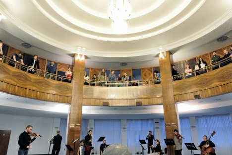 Hneď sme sa presunuli cez ulicu naproti do Katedrály Božského spasitele. Tam sa odohrávala prvá časť performance, Three Places Ostrava. Je nutné poznamenať, že sa skôr jednalo a formu happeningu, vzhľadom na presuny z miesta na miesto. Priestor katedrály ponúkol príjemné akustické prostredie, s ktorým sa samotná „performance“ pohráva. Nasledovala MM centrum, kde počas ináč jemnej skladby postavenej na držaných tónoch, hučali chladiace boxy. Krásny prvok. Posledným miestom bolo Foyer bývalej Union banky. Autor, Peter Ablinger, vymyslel zaujímavý nápad, však podľa môjho názoru nebol jeho potenciál zďaleka naplnený. Z priestorom sa hralo minimálne (pritom možnosti boli obrovské) a síce je pravda, že samotné kompozície boli odvodené od merania z priestorov, však autoportrét som v tom necítil. Varianta chôdze medzi miestami je príjemná, človek sa prejde po čerstvom vzduchu a vykonáva nejakú aktivitu.