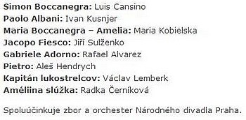 Po šesti letech se Opera pražského Národního vrací do slovenské metropole, aby tu uvedla v rámci festivalu Eurokontext svoji novou inscenaci Verdiho Simona Boccanegry.V Praze se premiéra uskutečnila loni v říjnu jako projekt převzatý od Velšské národní opery v Cardiffu, kde tuto inscenaci už v roce 1997 nastudoval David Pountney.