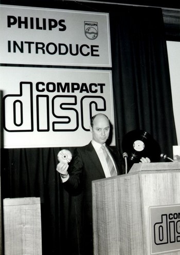 Cédéčko tak ve druhé polovině osmdesátých let porazilo jak vylepšenou verzi klasických desek, označovanou jako CX, tak konkurenční systém Mini Disk německé firmy Telefunken. Šlo o zmenšenou vinylovou desku s digitálním záznamem, k jehož snímání sloužila jehla jako u gramofonů.