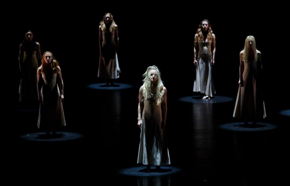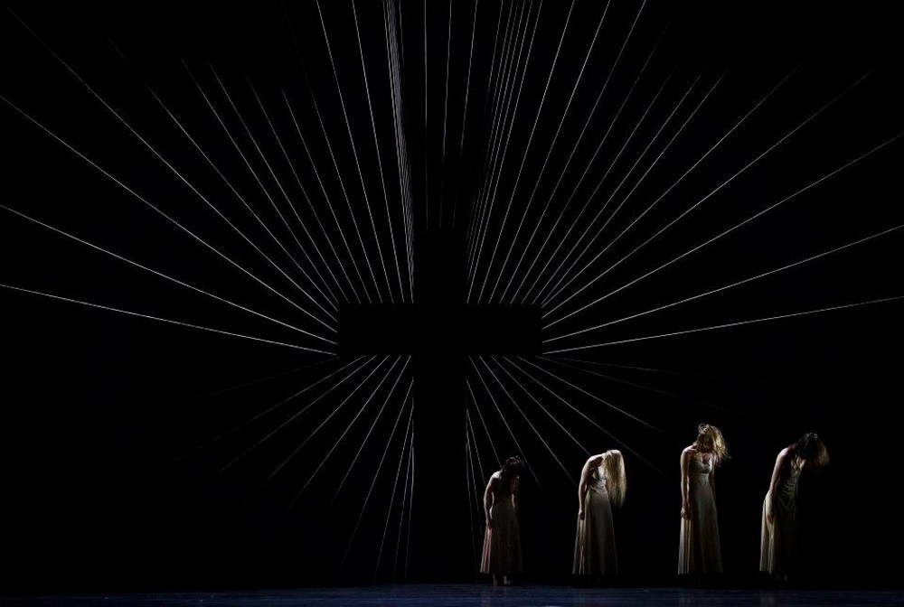 Dílu dominuje výtvarná složka: horizont je zakryt, v tmavé kulise zeje temný otvor ve tvaru kříže, od nějž jsou do všech stran napjata tenká lana, která tak připomínají paprsky světla (efektu je bohužel dosaženo na úkor divákova pohodlí, protože kvůli přestavbě se neúměrně prodloužila přestávka). Ve světelném designu se střídají dva dominantní prvky: osvětlená cesta od kříže směrem k rampě a bodově jasně ohraničené kruhy, do nichž vstupují tanečnice. Choreografie se snaží zachytit zoufalství ženy, jež je znásobeno každou z tanečnic, z nichž se vyděluje sólistka. Pohybový materiál její postavy se ale neliší od ostatních, její postavení určuje vztah ke skupině, pro kterou je čímsi jako vůdkyní. Tanečnice v dlouhých splývavých šatech a prostovlasé působí žensky a křehce, což jistě pro mnoho diváků bude hlavním estetickým kritériem.