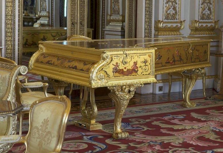 Erardův klavír v Buckinghamském paláci v Londýně z roku 1856 (zdroj Vimeo)