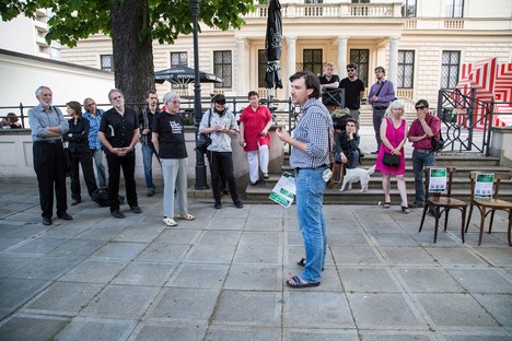 Okolo troubila auta a řinčely tramvaje a některým slovům Viktora Pantůčka nebylo rozumět. Sám na nádvoří Besedního domu nabádal přítomné, ať se snaží rozumět spíše zvukům přítomného okolí. Přítomnost Besedního domu ve výše naznačeném „procházení“ působí jaksi prkenně a je otázkou, zda-li v takto koncipovaném programu má stále co dělat. Alespoň částečnou odpovědí byl zahajovací koncert festivalu, který se konal ve zcela naplněném sále tohoto sídla brněnské Filharmonie.