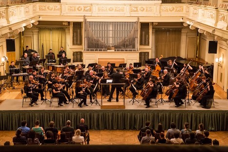 Je to asi dva roky zpátky, kdy jsem zahájil osobní boj za zvedání hlavy při procházení městem. Tradiční průchod brněnskými ulicemi je vázán na přesun po předem stanovené úsečce vázané na pečlivé sledování terénu, jež má vést k jejímu překonání v co možná nejkratším čase. Prostým zvednutím hlavy ke střechám domů, jejichž přízemní výklady velmi dobře známe, se najednou ocitneme v prostoru nepoznaném a cizím. Seznamujeme se s tváři chrličů, obrovskými latinskými nápisy, rámy vlnících se funkcionalistických staveb… A je samozřejmě jen na nás, zda-li tyto věci chceme vědět, jestli je potřebujeme. Stejně to funguje i se zvuky, s hudbou. A právě ono vážení si okamžiku a uvědomování si jeho pomíjivosti tvoří páteř osmadvacátého ročníku Expozice nové hudby, který tyto okamžiky nastřádá v programu nazvaném Procházení hudbou. Festival putující v ročním provozu mezi dvěma festivaly (Moravský podzim, Velikonoční festival duchovní hudby) opět bere na svá bedra snahu vstupovat do města a nabídnout možnost zvednout hlavy nad úroveň chodníků. V názvu zmíněné procházení tedy nabývá dvou rovin, přičemž ta první byla naznačena výše, slovy dramaturga Viktora Pantůčka jde o „obnovu aurální stránky,“ a stránkou druhou bude skutečný fyzický pohyb po destinacích vytyčených festivalovou dramaturgií.