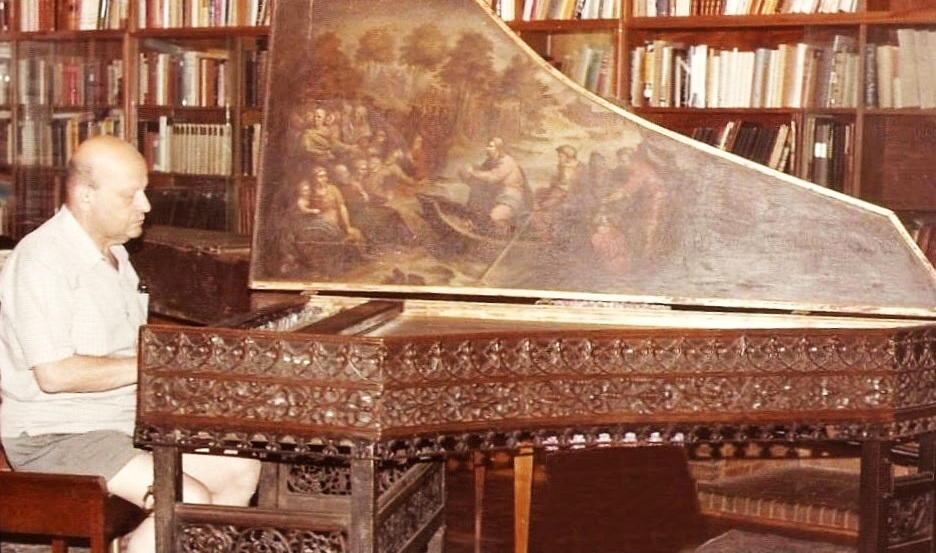Hans Adler u cembala W. Landowské (zdroj The Hans Adler Collection of Early Instruments)