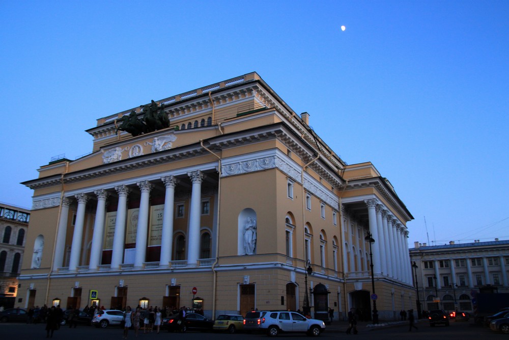 19. a 20. apríla sa konalo predstavenie s názvom Night of One-act Ballets. Na nádhernom priestranstve, ktoré ohraničuje Nevský prospekt a šedivá iónska fasáda Ruskej národnej knižnice, stojí úchvatná Rossiho stavba – Alexandrinské divadlo. Jeho jednoduchú fasádu zdobí stĺpová lodžia, ktorej dominuje socha Apolóna na voze a dve niky po stranách, ktoré ukrývajú sochy múz: Terpsichoré – múzy tanca a zborového spevu a Melpomené – múzy tragédie a lyriky. Naopak na bočných stranách sa lodžia fasády mení vo vystupujúcu arkádu. Pri storočnom výročí Puškinovej smrti (v roku 1937) bolo divadlo premenované na Puškinovo, dnes našťastie opäť nesie meno Alexandrinské. V divadle sídli hlavne činohra a história divadelnej spoločnosti siaha až do roku 1756, čo z nej robí najstarší ruský súbor. Svoje prvé prevedenie tu mal Gogoľov Revízor (v roku 1836), ktorý spôsobil senzáciu a svoju premiéru tu mala Čechovova Čajka, ktorá naopak prepadla, takže Čechov nenápadne zmizol a stratil sa v dave na Nevskom prospekte. Keď už budete na predstavení, stojí zato divadlo obísť. Zozadu totiž k nemu ústi slávna ulica v Petrohrade toľko skloňovaného architekta Rossiho, Zodčevo Rossi. Je to nielen architektonicky najdokonalejšia ulica, proporčne absolútne vyvážená, ale má aj svoj špecifický význam. Ulica je filigránske urbanistické dielko, budovy po jej stranách majú totiž rovnakú výšku ako je šírka ulice (22 metrov). Každé okno, stĺp, dlažobná kocka, lampa má svoj zrkadlový obraz na náprotivnej strane. A to nie je všetko. Smerom od divadla na ľavej strane sa nachádza oná slávna škola, pojem, mýtus? Baletná škola Agrippiny Vaganovej. +++