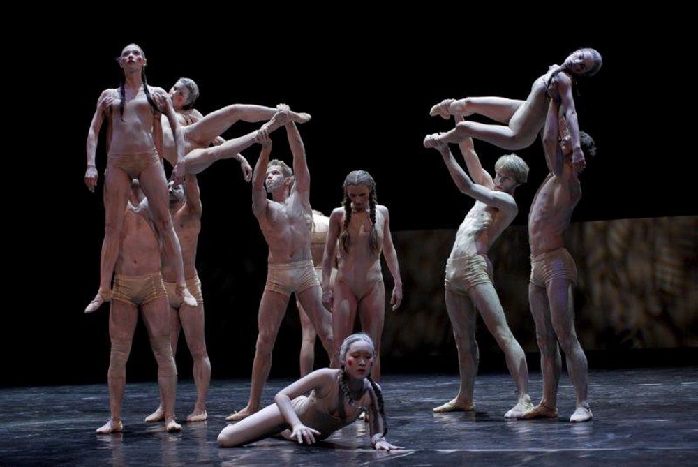 ===Večer priniesol zaujímavú dramaturgiu umeleckého riaditeľa festivalu Vasilije Medvedeva spolu s jeho týmom, ktorá spojila tri úplne rozdielne súbory i diela v idei: ako vyzerá súčasný tanec? K stému výročiu svetovej premiéry Svätenie jari Igora Stravinského v naštudovaní Slovinského národného divadla z Mariboru v choreografii Edwarda Cluga. Komorná inscenácia so šiestimi rovnocennými mužmi a ženami priviedla zaujímavý postmoderný tvar, ktorý ani tak nekládol dôraz na choreografiu, ale celkovú koncepciu. Clug inscenoval tradičný rituál oslavy jari ako mystérium spoločenstva ľudí, ktorým niečo chýba. Čo, to je otázka. Sú skoro nahí v priliehavej telovej spodnej bielizni a výrazným symbolom sú brady mužov, ktoré odkazujú k akémusi pohanskému rítu a výrazné líčenie žien. Clug, opakuje lineárne mizanscény, keď tanečníci stoja v rade, vytvárajú trojuholník, rovnobežné rady a opäť uzavreté formácie. Ľudia očakávajú nový začiatok, ktorého sa im nedostáva. Nervozita narastá pohybmi a gradáciou jednoduchých pohybov, ktoré opakujú.