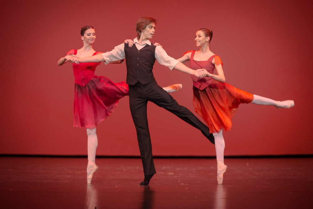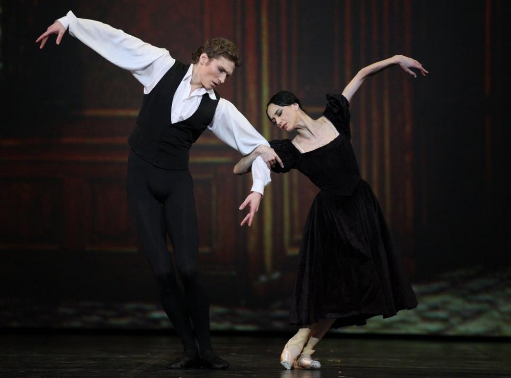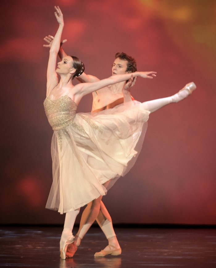 ===Druhá polovica začala opäť veľkolepo – fragmentom z baletu Petipu Talizman v redakcii Vasilyho Medvedeva. Yonahovi Acostovi (English National Ballet) sekundovala Anastasia Stashkevich z Bolšoj baletu. Opäť vzácne spojenie dvoch odlišných partnerov. Acosta z Londýna a prísna disciplinovaná „klasikárka“ z Bolšoj. Obťažné entré adagio, variácie, kóda dokázali, aká je škoda, že tento Talizman od Petipu je zabudnutý. Interpreti ho predchli vášnivou mužskou túžbou a Acosta osviežil klasiku svojim vnútorným ohňom. Stashkevich popri jeho drzej tanečnej pýche predviedla okázalo chladnú dokonalú interpretáciu medzi manierou a tradíciou. Štyri moderné choreografie v druhej polovici boli pestré a predviedli možné cesty baletu. Od moderny na špičkách (Fanfare, choreografa Douglasa Lee, interpreti Alicia Amatriain a Jason Reilly) so silným konceptuálnym rozmerom, cez Transparente Rolanda Savkovica, ktorý stavia na príbehu, situácii a psychológii a to ho vedie k vytváraniu choreografie (interpreti: Elisa Cabrera a Mikhail Kaniskin), až po kompaktnú modernu Davida Dawsona, ktorý v duete A Sweet Spell of Oblivion potvrdzuje, že sa dostáva medzi najlepších súčasných choreografov. Bez zbytočnej intelektuálnej maniery, či osobnej obsesie prezentovať niečo skutočne nové, vytvára hlboko zmysluplný pohybový slovník, ktorý však nestavia na vonkajšom efekte ale vnútornom prístupe tanečníkov. Fabien Voranger z Drážďan a Jurgita Dronina z Dutch National Baletu, vytvorili sugestívnu dvojicu, ktorá ovláda dokonale moderný slovník, ovláda predovšetkým ale svoje telo a neinterpretuje modernu formálne, ale má na ňu pripravené dispozície. S pohybom a krokmi sa hrajú a tým prekonávajú iné, niekedy príliš formálne choreografie. Jediná vtipná moderna bola od choreografa Antona Pimonova pod názvom Triangle, so sólistami Bolšoj baletu: Kristinou Kretovou, Annou Tikhomirovou a Artenom Ovcharenkom. Bola to veselá scéna o tom, ako dve ruské dievočky bojujú o jedného mladíka. Choreograf sa pohrával s ľudovými prvkami národných tancov, ktoré postavil na špičky pre dámy a vytvoril milostný trojuholník, ktorý roztancoval do furiózneho čardášu. Lucia Lacarra s manželom Marlonom Dinom (Bavorský štátny balet) sa predviedli v ich brilantnom čísle, v duete z tretieho dejstva Neumeierovej Dámy s kaméliami. Toto číslo zatancovali aj na Dance Open Gala, ktoré sa v marci konalo v Bratislave a netreba ho zvlášť predstavovať. Ak sme zažili rôzne pokusy o dokonalosť v Balanchinovom Stars and Stripes, tentokrát sme ho zažili úplne dokonalé. Joseph Gatti (Boston Ballet) a Ashley Bouder (New York City Ballet) sú ideálnymi súčasnými interpretmi. Bouderová, ktorá je navyše o hlavu vyššia proti Gattimu, už len tým vytvára skvelú vtipnú rovinu, lenže Gatti je taký rýchly, taký briskný, taký elegantný, že predvádza s balerínou neskutočné divy. A to, ako sa potom každý sám vysporiada s variáciou a spoločnou kódou, je baletná lahôdka. Gattiho rotačná technika je zázrak. Spôsob akým a ako rýchlo točí secondy, z ktorých prejde bez problémov do deviatich piruet, ktoré s pribúdajúcimi obrátkami spomaľuje a nakoniec 5 sekúnd vydrží v póze s nohou na passé, taliansky changement de pied, je interpretačný vrchol. Technická krása a osobný šarm Bouderovej až po také nuansy, ako spôsob akým otočí dvojitú piruetu v arabeske, ako povýši pas échappé, to je baletný orgazmus.