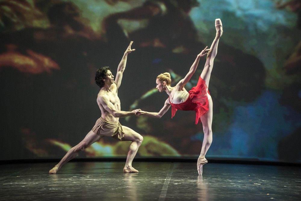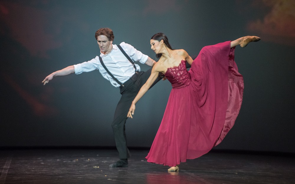 Navyše vznikli zaujímavé partnerské spojenia tanečníkov. Hneď v prvom čísle Grand pas zo Slávnosti kvetín v Genzane bol spojený sólista Bostonského baletu Joseph Gatti a primabalerína Evgenia Obraztsova (Bolšoj balet). Obaja tanečníci dokázali mimoriadne dispozície pre osobitný štýl Bournonvilla. Radosť z tanca, dokonalá technická istota a ohňostroj virtuozity vedľa pôsobivých obrazov tým, že sólistom zdatne sekundovalo osem balerín. Gatti predviedol dve luxusné variácie bez jediného zakolísania. Allegrové pasáže, drobné kroky a battementy, cabrioly, elegantná Obraztsova, boli ako z rozprávky. Keď niekto dokáže takto dokonale zatancovať Bournonvilla, tým len potvrdzuje, že tento štýl nie je mŕtvy, ale je na svete čím ďalej menej tanečníkov, ktorí sú schopní sa s nárokmi choreografie popasovať. Christopher Wheeldon, toho netreba predstavovať. Sólisti Dutch National ballet Anna Tsygankova a princ medzi baletnou elitou pánov Matthew Golding, ktorý vyzerá ako tancujúci Brad Pitt, zatancovali plesové adagio z Prokofievovej Popolušky. Zložité, koncipované zdvíhačky, neustály vzdušný pocit, že balerína sa ani špičkami nedotýka podlahy, vytvorili dokonalú ilúziu kúzelného stretnutia dvoch zamilovaných bytostí. Známe číslo tanečníkov It Should a Been Me od Petera Martinsa zatancoval s technickou suverenitou a arzenálom najzložitejších skokov s okúzľujúcim výrazom Daniel Ulbricht (New York City Ballet). Johna Cranka pripomenuli Alicia Amatriain a Jason Reilly (Stuttgart Ballett) v duete z Onegina. Najnáročnejšie zdvíhačky a partnerské figúry interpretovali ako súčasť vnútorného sveta svojich postáv a nezostali technike ani výrazu nič dlžní. Diana a Acteon sa stal vrcholom prvej polovice. Herman Cornejo (American Ballet Theatre) a Iana Salenko (Staatsballet Berlin) spojili tradície dvoch škôl, európskej – Salenko a americkej – Cornejo. Cornejovo vášnivé fyzické tancovanie, technické dispozície čo do rozsahu, vysoké skoky, bezproblémové piruety s päť a viac otáčkami, brilantné Saut de basque a akási vnútorná fyzická vášeň silne turbulentne korešpondovali s virtuóznou Salenkovou, ktorá predviedla jedno z najkrajších fouettée aké je možné dnes u balerín vidieť. Po tomto fyzickom a erotickom tanci sa dramaturgia stíšila v meditatívnom akoby z iného sveta prezentovanom tanci lásky: v Thais Rolanda Petita, ktoré zatancovali sólisti Bolšoj baletu Olga Smirnova a Semyon Chudin. Tichá a dokonalá harmonická rytmická poézia dvoch senzitívnych bytostí vyzerala ako pretvorený vizuálny obraz sólových huslí, ktorým odpovedá orchester. Prvá polovica vyvrcholila netradične. Scénu ovládol súbor Entredos Ballet Español, ktorý predviedol vášnivé flamenco, ktoré svojou dokonalou interpretáciou a choreografickou pôsobivosťou v ničom nezaostávalo za klenotmi klasického baletu. Rytmická predohra, keď tanečníci fyzickým konaním generujú zvuk vyvrcholila v gradovanom ošiali symfonického zvuku a dokonalej súhry v úžasnom rytme.+++