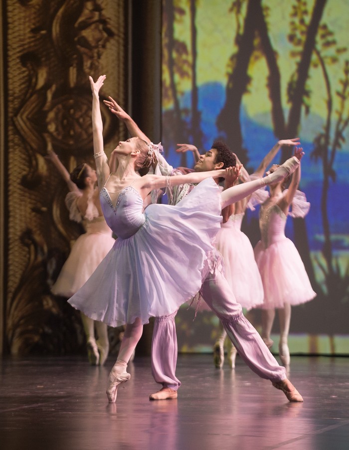 Dramaturgia gala večera pripravila mimoriadne finále. Vzkriesila klasickú choreografiu Valpružinej noci z Gounodovej opery Faust a Margarétka v choreografii Leonida Lavrovského. Ale akoby to nebolo samo osebe málo, postavila do troch rolí tri celkom odlišné a typovo vyhranené osobnosti. Daniel Ulbricht ako Pan, Anna Tsygankova a Matthew Golding ako Bakchus. Po zborovom úvode nasleduje slávne adagio, variácie všetkých troch sólistov a spoločný orgiastický ansámblový záver. Technicky vybrúsená choreografia ako pocta tanečníkom a baletnému vokabuláru, upútala svojou nádherou a spôsobom interpretácie. Obrovský ansámbel priezračných bytostí, elfov, dryád, zaplnil javisko a vytvoril fantastické tableaux ako z grand opery. Obzvlášť mimoriadne šťastné (a mohli by sa tým poučiť i domáce gala) sa javí využiť k scénam, v ktorých to pôvodne bolo aj ďalších tanečníkov. Večer nepôsobí potom chudobne, len samé duetá, ale má aj divadelný rozmer. Tsygankova so svojou nádhernou postavou a baletnými rukami bola dokonalou erotickou ženou, múzou či bohyňou v ťažkej choreografii (nádherné Pas baloné sauté v diagonále) a Golding, ktorý skoro nahý ako oživená tancujúca antická socha bol jej partnerom, vytvorili fyzicky dokonalý pár. Ulbricht v trikote s holou hruďou a výrazným líčením bol zase správny, rozšafný i démonický škriatok, ktorý charakter roly nehádzal na výraz, ale vytváral ho dokonalou interpretáciou choreografie. Fascinujúci záver gala. +++