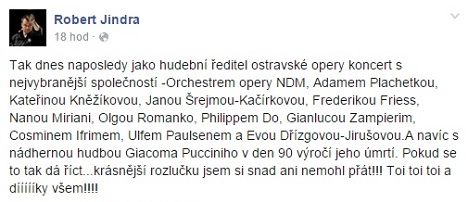 Robert Jindra působil v čele ostravské opery od března 2010, tedy necelých pět let; o okolnostech jeho odchodu z Ostravy jsme informovali před nedávnem (zde a zde).