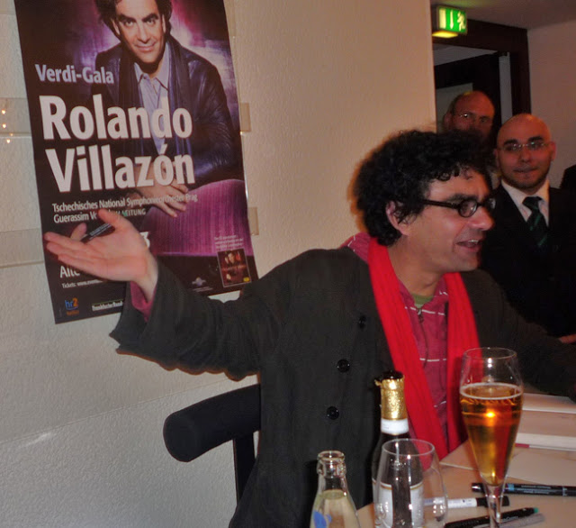 Laeiszhalle Hamburg, Salle Pleyel Paříž, nejnověji Alte Oper Frankfurt, hned zítra pak Viktoria Hall Ženeva, příští čtvrtek Grand Theater Aix-en-Provence, neděle Berlínská filharmonie a konečně středa 8. května pražský Obecní dům. Tak vypadá dosavadní jízda Rolanda s vernovským programem, který nazkoušel v Praze (psali jsme zde). +++===Tohle jsou fotky ze čtvrtečního frankfurtského koncertu, takhle to tam vypadalo v zákulisí, když si Rolando dal při autogramiádě pivo.+++