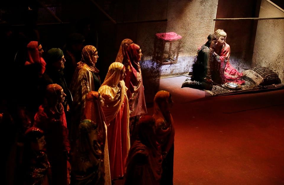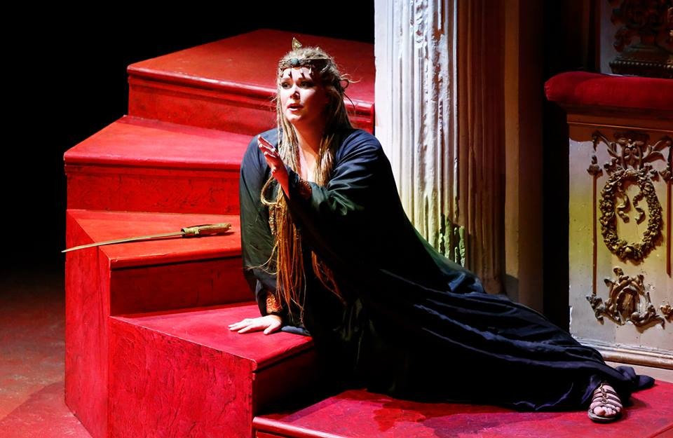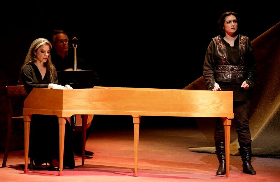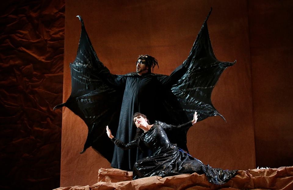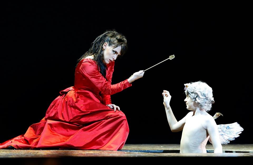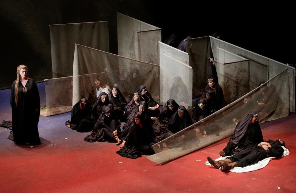 Režisér Mario Martone, scénograf Sergio Tramonti a kostýmová výtvarníčka Ursula Patzak javisko Teatra Rossiniho zbytočne nezahusťovali a vzdušne priehľadnými závojovými stenami menili hrací labyrint. Exotickosť námetu podčiarkovali farebné, historizujúce kostýmy a pastelovo kolorované svietenie. Rozhorané a vysvietené bolo aj proscénium. Vzhľadom na veľkú náročnosť hlavných postáv nevyžadoval režisér žiadne rozptyľujúce herecké akcie, podobne aj zborové výjavy boli poňaté skôr koncertne. Azda najväčším vzruchom bola pastierska scéna so stádom živých (a poslušných) kôz.