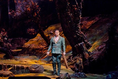 Dvojice režiséra Otto Schenka a scénografa Günthera Schneider-Siemssena začínala umělecky působit v šedesátých letech minulého století a je to na jejich způsobu práce vidět (za předpokladu, že paní Laurie Feldman kopírovala letos jejich inscenaci co nejpřesněji). Téměř realisticky působící kašírovaná scénografie může být animována světlem sebevíc, ale nic jiného než v podstatě neumělou a lehce poetizovanou kopii přírody z ní vykřesat nelze. Když Renée Fleming na začátku prvního jednání zpívá svou árii o měsíčku vsedě na stromě nad jezerem, ukončí ji a čeká na potlesk, cítíme, že jsme se propadli v čase.