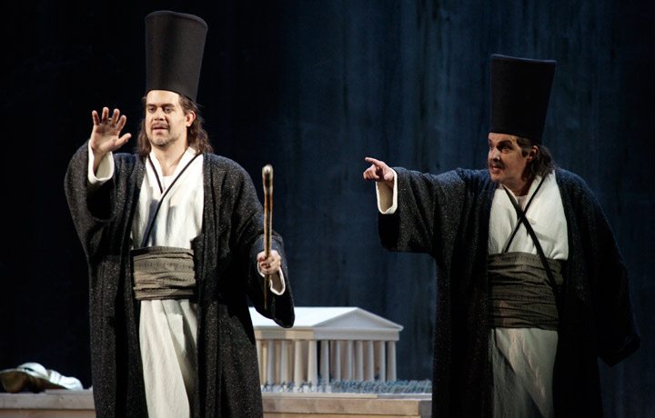 O hudební část se postaral známý americký dirigent Dennis Russell Davies v čele Brucknerova orchestru, který normálně sídlí v Brucknerově Konzerthausu na břehu Dunaje. Představení, které jsem viděl, ale řídil zdejší dlouholetý mladý německý dirigent Marc Reibel, který je v operním divadle v Linci činný od roku 2001. Bruckner Orchester Linz je velmi kvalitní a v mezinárodním kontextu uznávané hudební těleso, a tak, jak je v Rakousku i v německých zemích zvykem, obsluhuje i operu.